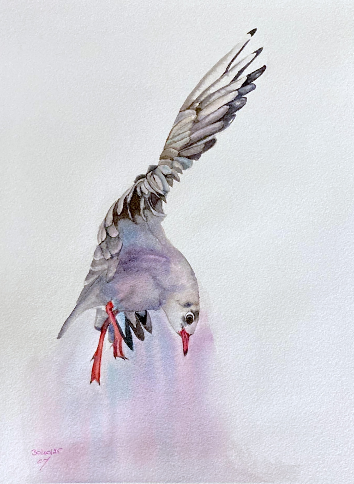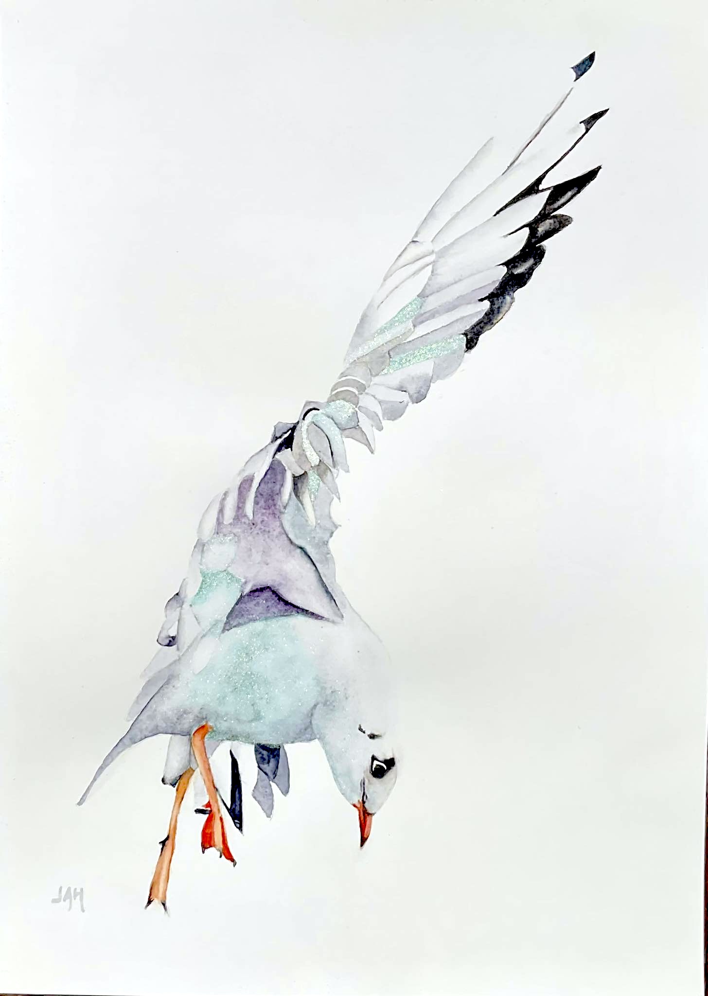 Watercolour Seagull Flying tutorial